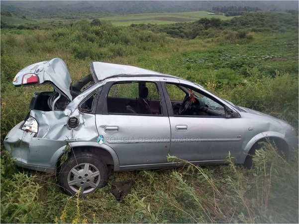 En el lugar, un automóvil Chevrolet Classic, dominio AVC586, de color gris, conducido por Cyntia Karina Gómez (37), en compañía de Nohemí del Valle Gómez (36), una niña de 3 años y un niño de 12, por causas que se investigan, terminó volcando a unos 50 metros aproximadamente de la banquina.