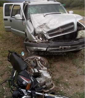 Alejandro Ismael Diarte (28), circulaba en un camioneta Chevrolet S-10 gris, dominio FJK-156, en compañía de Marcos Emanuel Chasampi (27), y Alfredo Fabián Rivera (27), y por razones que son materia de investigación colisionó con una motocicleta Yamaha YBR 125 cc., dominio 485-JPL, de color negro, al mando de Víctor José Ponce (62), acompañado por Griselda Yohana Ponce (25).