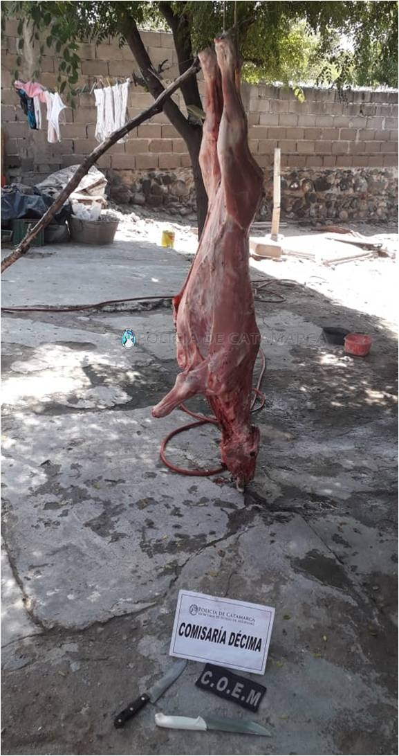 El mismo, al percatarse de la presencia de los Policías, emprendió la fuga, por lo que al ingresar al inmueble secuestraron dos cuchillas y un automóvil Citroën C-3 negro, que habría sido utilizado para el traslado de los semovientes, en tanto que efectivos de la División Abigeato de la Policía de la Provincia, incautaron el animal faenado, como así también otro ternero que estaba atado en el patio del inmueble.