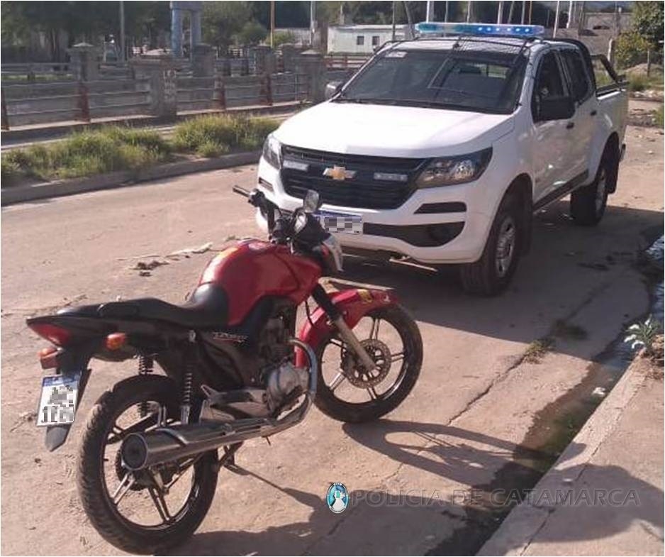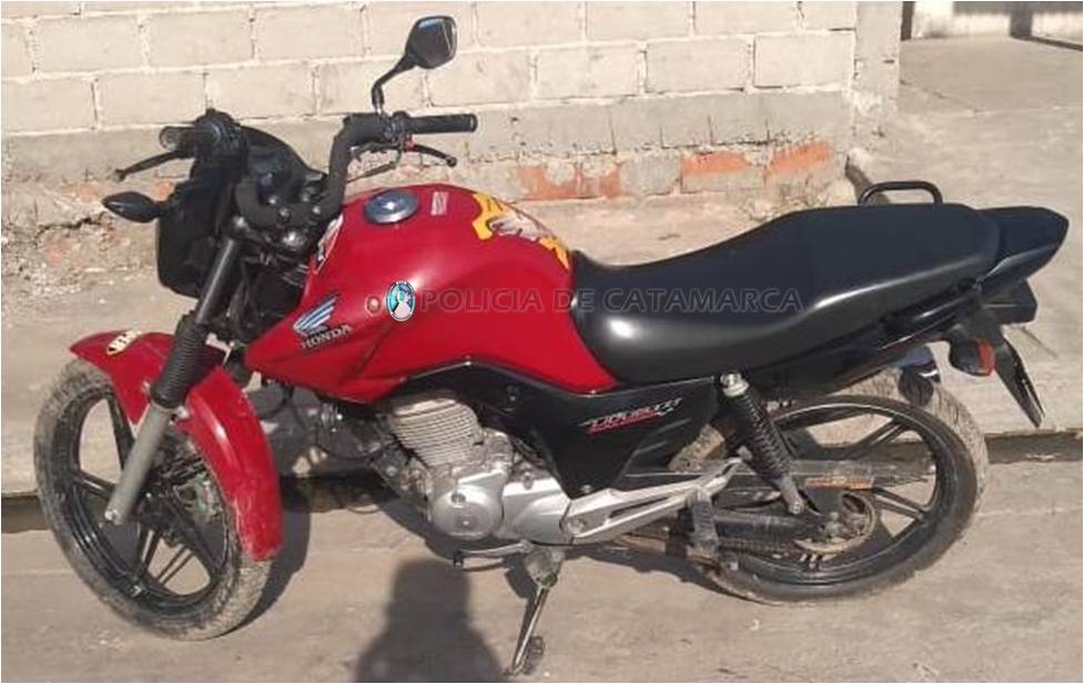 En el lugar, los policías procedieron al secuestro de una motocicleta Honda CG Titán 150 cc., de colores rojo y negro, la cual habría sido sustraída momentos antes, de una vivienda ubicada en la Manzana “Ñ” del mencionado barrio, propiedad de un joven de 25 años, por dos sujetos, quienes al ser sorprendidas por vecinos y ocasionales transeúntes, habrían emprendido la fuga en otra motocicleta de color gris, dejando abandonado el rodado sustraído.
