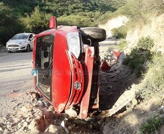 Una adolescente de 16 años, conducía un automóvil Toyota Etíos, dominio AB 235 KP, de color rojo, en compañía de Esteban Nieva (19), y por motivos que se tratan de establecer perdió el control del rodado y terminó volcando a la vera de la ruta.