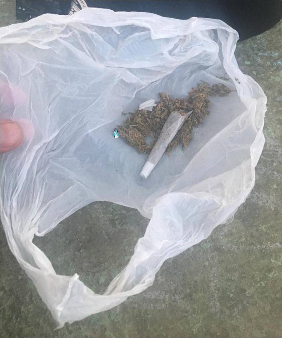 Al realizarles la requisa correspondiente, los policías procedieron al secuestro de una bolsa que tenían entre sus pertenencias, la cual contenía una sustancia herbácea y un cigarrillo de armado casero con la misma sustancia.