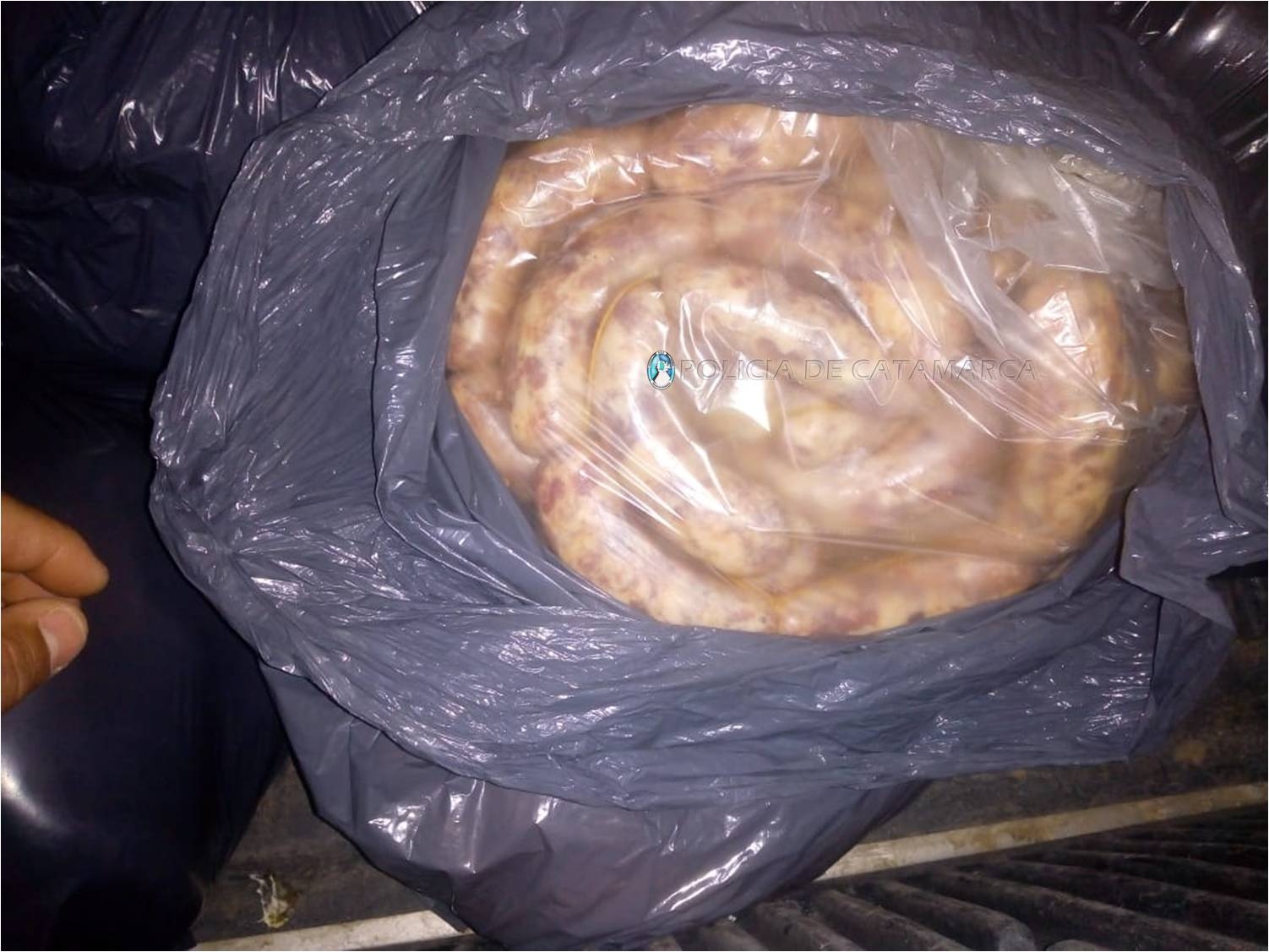 Al inspeccionar el rodado, los policías observaron que estas personas llevaban seis bolsas de consorcio, conteniendo 70 kilos de embutidos aproximadamente, sin la cadena de frío y medidas de salubridad e higiene correspondientes.