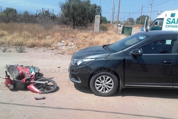 Hoy, a las 15:15, se produjo un siniestro vial en la rotonda que une la ruta nacional Nº 38 con la avenida Coronel Felipe Varela y la Avenida de Circunvalación, a la altura del ingreso al Country Chacras del Valle Nuevo, de la localidad de Santa Rosa, Dpto. Valle Viejo.