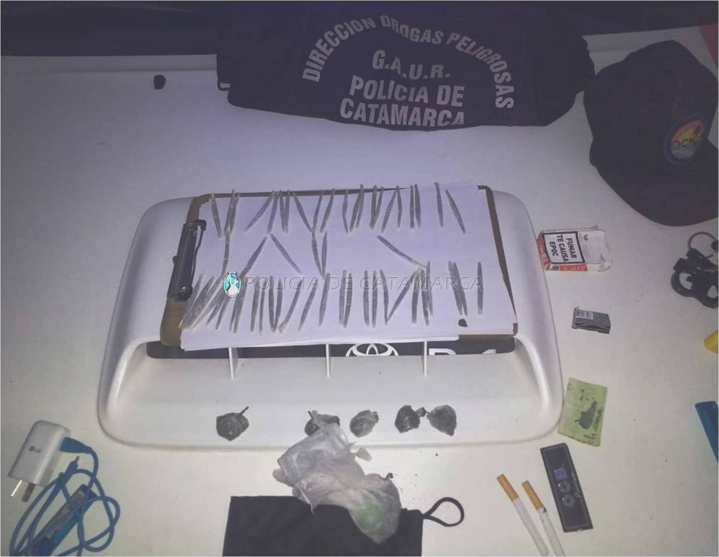 Efectivos del Grupo Antinarcóticos de la Unidad Regional N° 5 (GAUR-Tinogasta), con la colaboración de sus pares de la Comisaría Departamental Tinogasta, procedieron a controlar a dos sujetos.