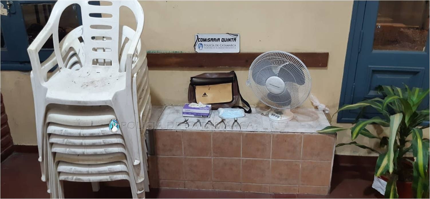 En el lugar, los policías procedieron al resguardo de un niño de 14 años y a la demora de un adolescente de 16 años, quienes habrían sustraído ocho sillas de plástico de color blanco, un ventilador blanco, y un bolso con instrumentos dentales, del interior de la Escuela Santiago del Estero, ubicada en las inmediaciones.
