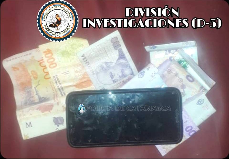 En el inmueble, los investigadores lograron recuperar un teléfono celular Motorola G-7, y la suma de 2500 pesos en efectivo, discriminados en billetes de distinta denominación, que le habrían sustraído a un joven mayor de edad, conforme una denuncia penal radicada en la Unidad Judicial N° 2.
