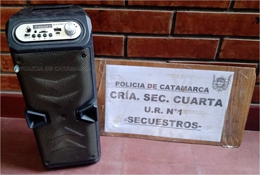 Justo en ese momento, los uniformados fueron alertados por una joven que esta persona había sustraído un parlante Black Point, del interior de un automóvil, por lo que el sujeto intentó darse a la fuga.