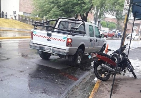 Hoy, a las 10:50, en la calle Hernando de Pedraza, inmediaciones a la rotonda que la une con Avenida Presidente Castillo, una Yamaha Crypton 110 cc. colores rojo y negro, conducida por Luciana Belén Cisneros (25), chocó contra una Ford Ranger blanca del Hospital de Niños, que estaba estacionada.