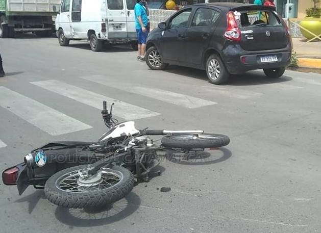 Hoy, a las 13:55, se registró un siniestro vial en la calle Julio Herrera S/N° de la localidad de Santa Rosa, Departamento Valle Viejo, protagonizado por un automóvil Renault Kwid, dominio AD815LB, de color gris, conducido por Mario Atilio Varela (87), que por razones que se tratan de establecer colisionó con una motocicleta Honda CG Titán azul 150 cc., dominio 625DRF, al mando de Javier Alejandro Martínez (21), acompañado de Sol Antonella Monjelo (24) y un niño de 3 años de edad.
