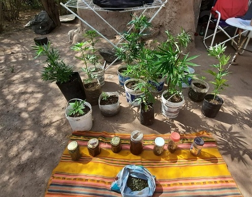 Al finalizar los procedimientos se procedió al secuestro de 80 plantas y plantines de marihuana; 259 semillas de marihuana; 7 frascos conteniendo "cogoyo" de marihuana; 5 frascos conteniendo aceite de cannabis sativa; 71 gramos de picadura de marihuana; 1 picador de marihuana; 1 gotero de aceite de cannabis y 2 recipientes con restos de picadura de marihuana.
