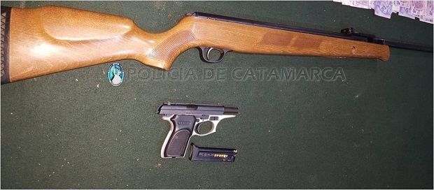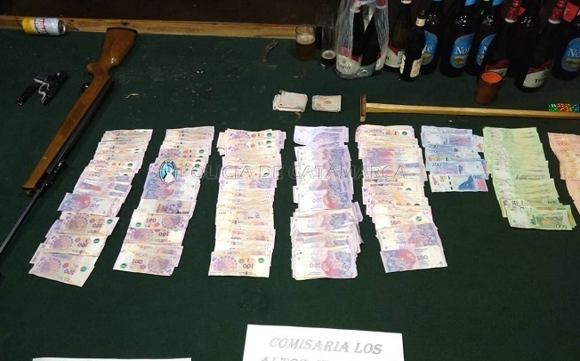 Cabe señalar, que el personal policial interviniente secuestró una pistola Bersa Thunder, calibre 22 mm., de colores negro y gris, con su respectivo cargador y nueve cartuchos, 1 aire comprimido Fox GR-1600W, calibre 5,5 mm., la suma de $313.680; 7 vehículos de distintas marcas y modelos, 1 mesa, 1 cubículo de cuero, 12 dados, 1 bastón de madera, y varias bebidas alcohólicas.