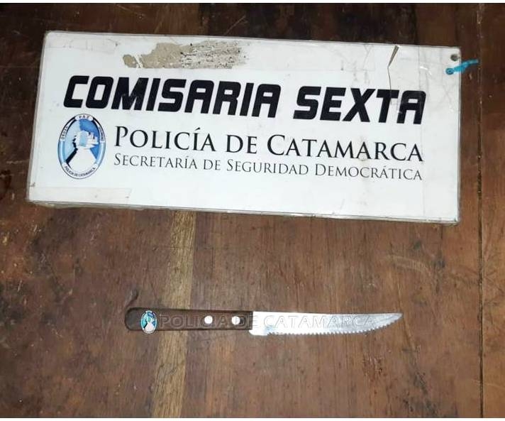 Al momento de realizarle la requisa correspondiente, el personal policial interviniente encontró entre sus prendas de vestir un cuchillo tipo tramontina, que quedó en calidad de secuestro.