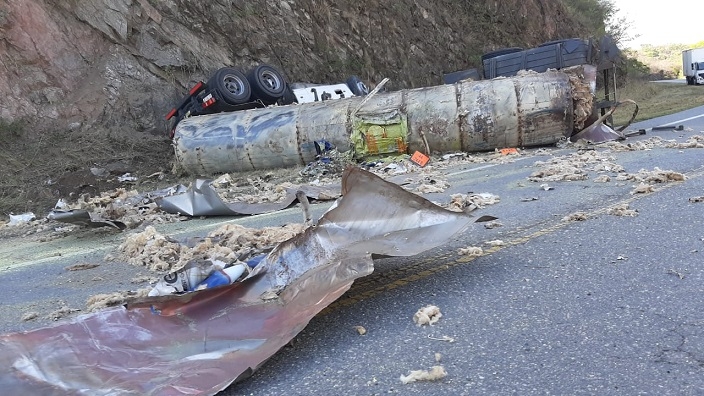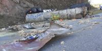 Según se informó desde Vialidad Nacional, uno de los camiones llevaba bobinas de papel, que quedaron desparramadas.
