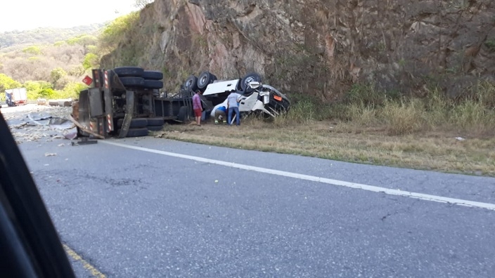 En el lugar se produjo la colisión de dos camiones que circulaban en sentido contrario, y sólo se encuentra media calzada habilitada. Hay derrame de un cargamento de azufre, por lo que Bomberos se dirigen para intervenir en hecho.