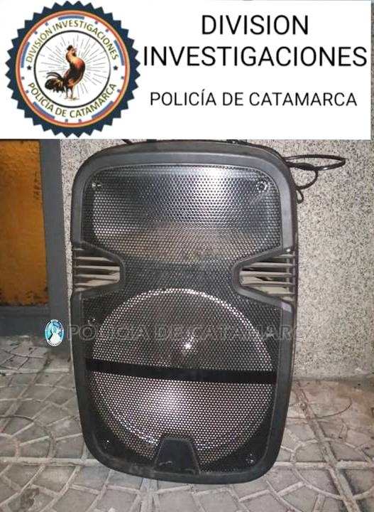 Continuando con las tareas investigativas, los policías se hicieron presentes en un inmueble ubicado en el barrio La Esperanza, donde se entrevistaron con una mujer mayor de edad, quien hizo entrega voluntaria de un parlante amplificador negro, que también fue incautado, manifestando que lo habría adquirido de buena fe.