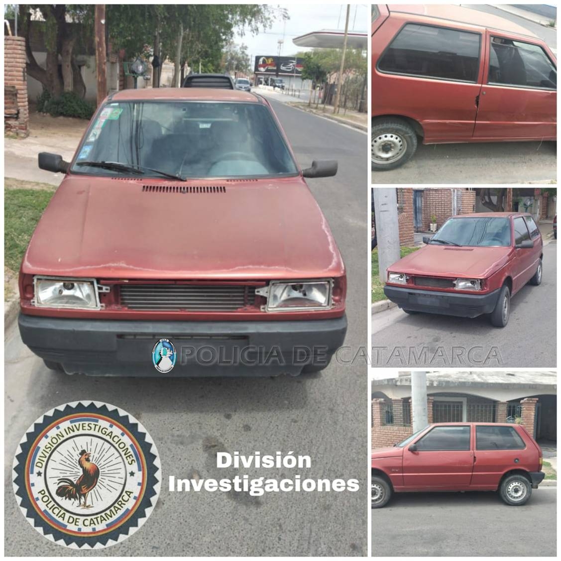 En el lugar, procedieron al secuestro de un automóvil Fiat Uno rojo, que estaba abandonado en la zona y habría sido denunciado en el Precinto Judicial N° 4 como sustraído, donde un hombre de 52 años manifestó que personas desconocidas se habrían apoderado del vehículo que estaba estacionado en inmediaciones a la esquina de la calle Gobernador Eusebio Ruzo y Avenida Mariano Moreno.