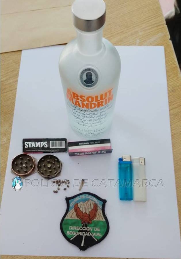 En el vehículo, circulaban cuatro personas de ambos sexos, mayores de edad. Tras una inspección, los policías encontraron semillas aparentemente de la variedad cannabis sativa, la colilla de un cigarrillo de armado casero, con restos de una sustancia herbácea, una picadora con restos de la misma sustancia, dos paquetes de papel seda y una botella de vodka.