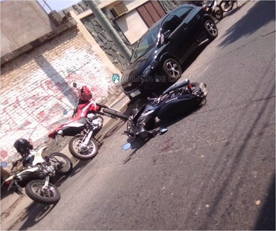 A las 13:20 de hoy, en la esquina de calles Las Rosas y Los Álamos, se produjo un siniestro vial protagonizado por una motocicleta Corven Mirage 110 cc., dominio 077-KCU, de color gris, al mando de un adolescente de 16 años, que por razones que se investigan colisionó con un automóvil Chevrolet Corsa blanco, dominio MFW-942, conducido por Guillermo Vega (35).
