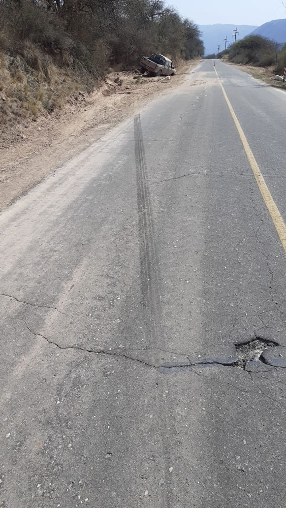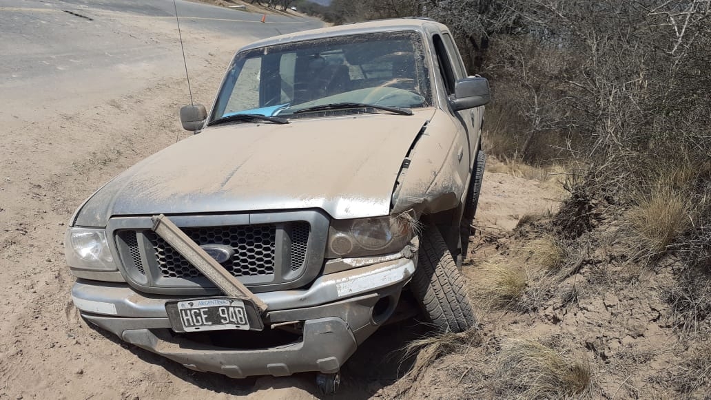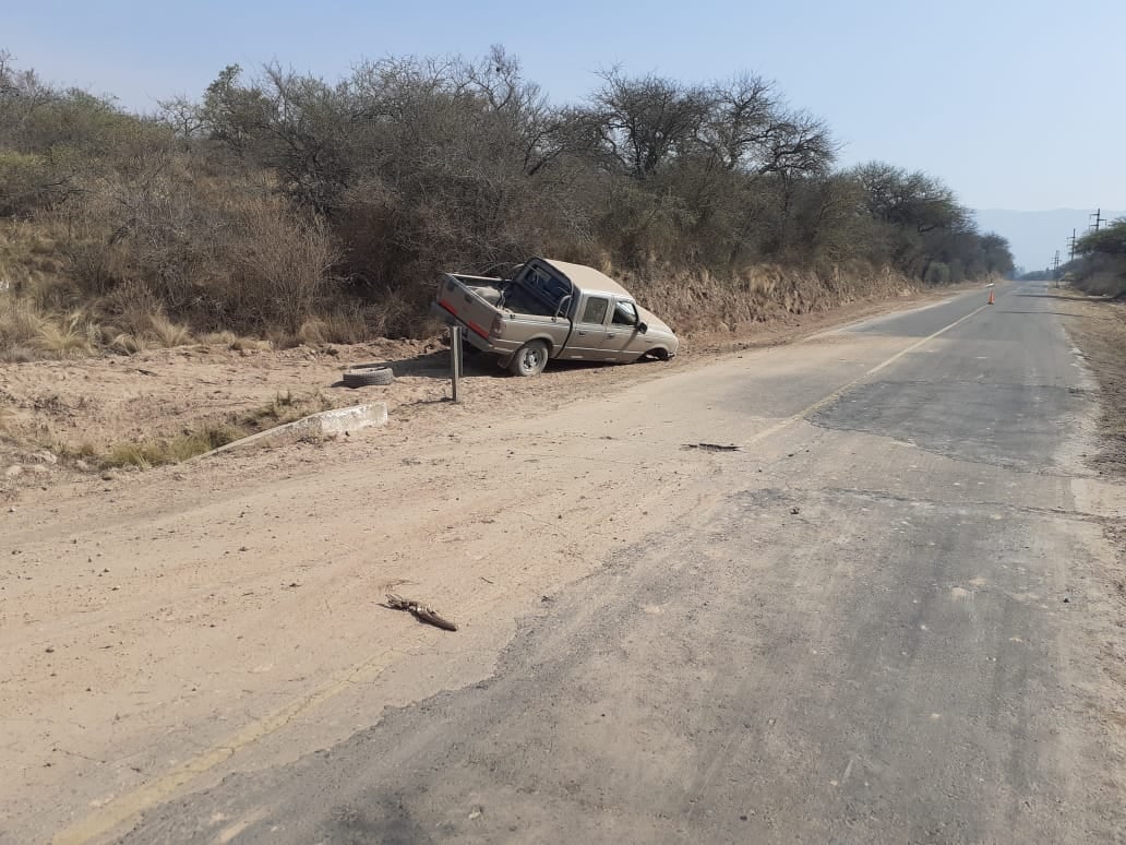 A las 9.10 de la mañana de hoy, en la ruta provincial N° 4, a la altura del Km. N° 33, de la localidad de El Rodeo, Ambato, se produjo un siniestro vial protagonizado por una camioneta Ford Ranger, dominio HGE-948, de color gris, al mando de Facundo Marcelo Vehils Ruiz (18), en compañía de Fabricio Gastón Tapia (21).