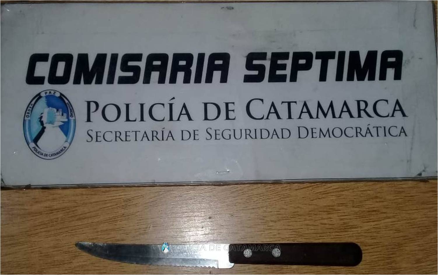Inmediatamente, quedó alojado en la Seccional a disposición de la Fiscalía de Instrucción en turno, mientras que se invitó a la damnificada a radicar la denuncia penal correspondiente en el Precinto Judicial N° 7, y el arma blanca fue incautada.