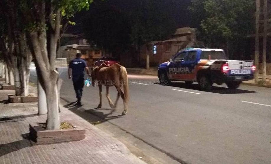 En el lugar, los policías se entrevistaron con una mujer, de 32 años, quien manifestó que mientras se dirigía a su domicilio observó que en la mencionada avenida estaba un animal equino, pelaje tostado pálido, miembros posteriores blancos, crin largo, en virtud de lo cual solicitaron la colaboración de sus pares de la División Montada de la Policía de la Provincia, quienes procedieron al secuestro del animal.