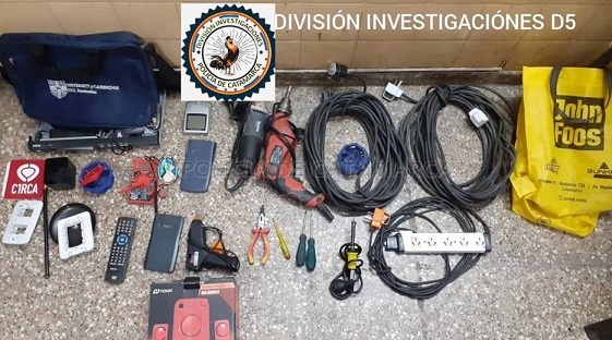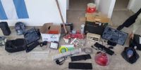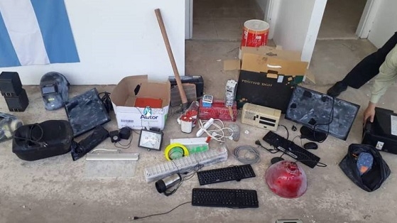 De inmediato realizaron rastrillajes por un descampado del sector oeste del colegio y lograron recuperar una impresora Epson, dos PC negras marcas Philips y Sónic, tres teclados, tres mouse, seis cámaras de seguridad, una CPU, dos DVR, dos parlantes, un taladro, una amoladora, un prolongador de corriente de unos 50 Mts. aproximadamente, dos calculadoras científicas, una caja de herramientas, tres luces de emergencia, una pava eléctrica, varios juegos de llaves, bolsas que contenían elementos escolares, un radiograbador, una máscara de soldar, dos carteles indicadores de salida de emergencia, una picota, un reflector y varios sellos.