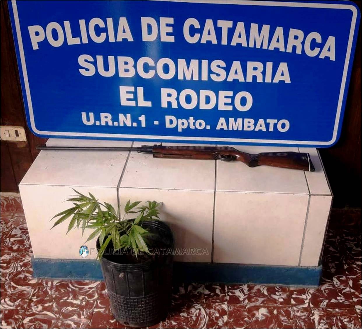 En el lugar, logró recuperar un rifle de aire comprimido, calibre 5.5 y, durante la medida judicial, encontraron una planta de marihuana, de unos 35 cm. aproximadamente, que estaba siendo cultivada, y quedó en calidad de secuestro.