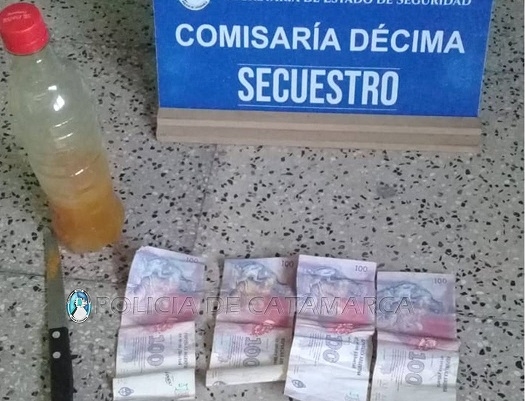 Cabe señalar que, al realizarle la requisa correspondiente a esta persona, los efectivos lograron recuperar la suma de $400 en efectivo, un cuchillo tipo tramontina, y una botella de plástico que contenía pegamento.