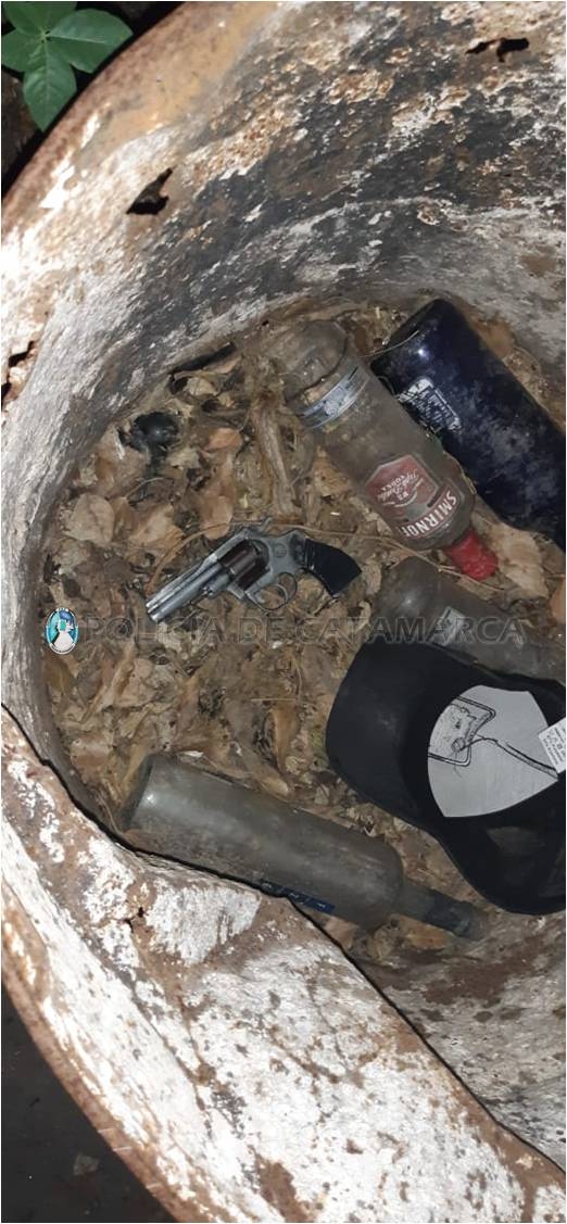De inmediato, habría verificado si faltaba algún elemento y encontró en el interior de un tacho en desuso de 50 litros, tapado con una gorra, un revólver calibre 22 mm., de color plateado mango negro, con cuatro proyectiles en el tambor, que podría tener relación con el hecho que se investiga.