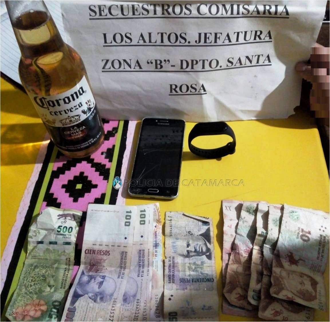 Al momento de realizarles la requisa personal correspondiente, los policías lograron recuperar un reloj marca Xiaomi, de color negro, un teléfono celular Samsung J-2, una botella de cerveza Corona y dinero en efectivo, que quedaron en calidad de secuestro.