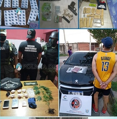 También se incautaron unos 200 Gr. de cocaína y 100 Gr. de marihuana, fraccionados en dosis listas para ser comercializadas, ocho plantas de Marihuana, 68 semillas de la variedad Cannabis Sativa, una carpa para cultivo de plantas de Marihuana y su posterior disecado, alrededor de un millón de pesos en efectivo, dólares, tres balanzas de precisión, 17 teléfonos celulares, 6 vehículos y armas de fuego.