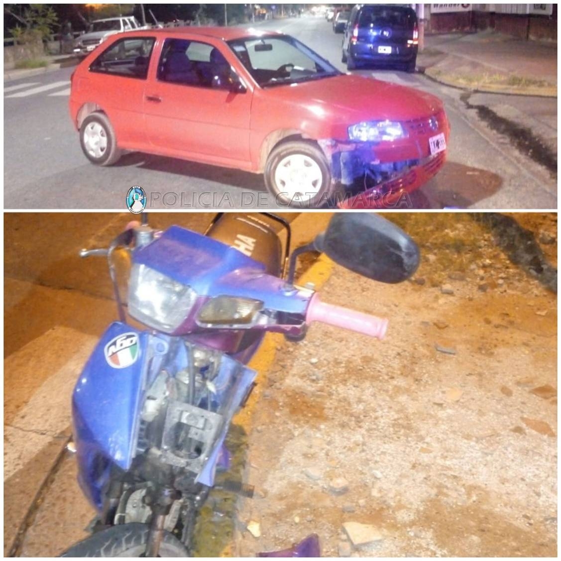 El accidente fue protagonizado por un automóvil Volkswagen Gol, dominio HLC-222, de color rojo, al mando de Franco David Astrada (25) que, por razones que son materia de investigación, colisionó con una motocicleta Yamaha Crypton azul 110 cc., dominio 157-DXP, conducida por Yamila Paola del Carmen Segovia (26).