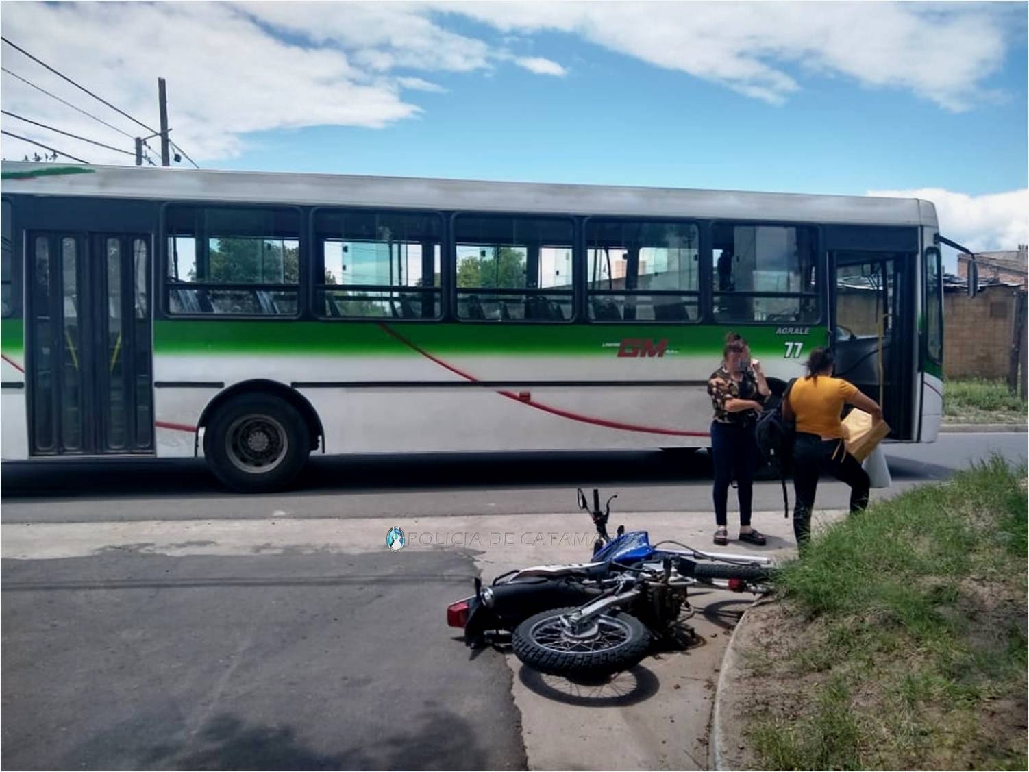 En el lugar, un colectivo Agrale 4293, dominio LKT307, de colores verde y blanco, perteneciente e la Empresa GM, al mando de Juan Manuel Gómez (28), por razones que se tratan de establecer colisionó con una motocicleta Keller azul 150 cc., conducida por Kevin Ezequiel Kalbermather (20), quien sufrió lesiones y fue asistido por facultativos médicos del SAME