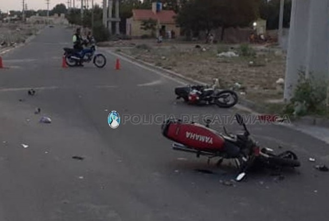 Hoy, a las 19:15, en Avenida Costanera, a altura de la cancha del Club 9 de Julio, una Honda CG Titán 150 cc., de color negro, al mando de Diego Armando Leiva (18), colisionó con una Yamaha Crypton 110 cc., en la que iban Loreley Quiroga (23) y Yamila Anahí Contreras (18).