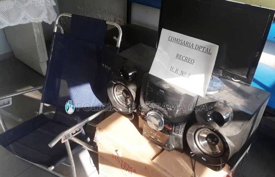 Según informó la policía, se recuperó un equipo de música marca TCL, con sus respectivos parlantes, una reposera azul, y un monitor LG de 21”, que quedaron a disposición de la Justicia interviniente, mientras que los moradores fueron supeditados a la prosecución de la causa.
