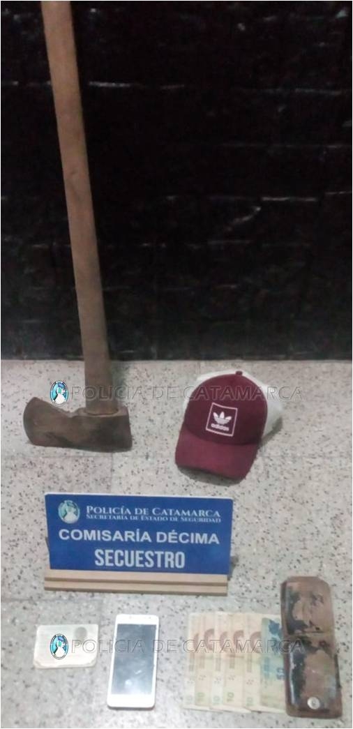 En la madrugada de hoy, a las 4, a través de un llamado telefónico, los efectivos tomaron conocimiento que al domicilio mencionado, habría regresado nuevamente otro de los supuestos autores del ilícito, y amenazó de muerte al damnificado para luego causar daños materiales a la puerta de ingreso del inmueble con un hacha, que también fue incautada, al igual que una billetera con dinero en efectivo, un teléfono celular Samsung J-2 Prime, de color blanco, y un documento nacional de identidad, los cuales fueron abandonados por esta persona, que estaría identificada, y se dio a la fuga.