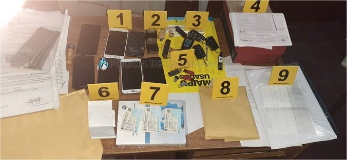 Tras irrumpir en los inmuebles, los policías procedieron al secuestro de dos automóviles; un Volkswagen Virtus, de color blanco, y un Ford Mondeo gris, un revólver Cal. 22 largo, cuatro sellos, una CPU, una Notebook, 9 teléfonos celulares de distintas marcas y modelos, 5 Pendrives, una Tablet, documentación de automóviles y recibos de pagaré.