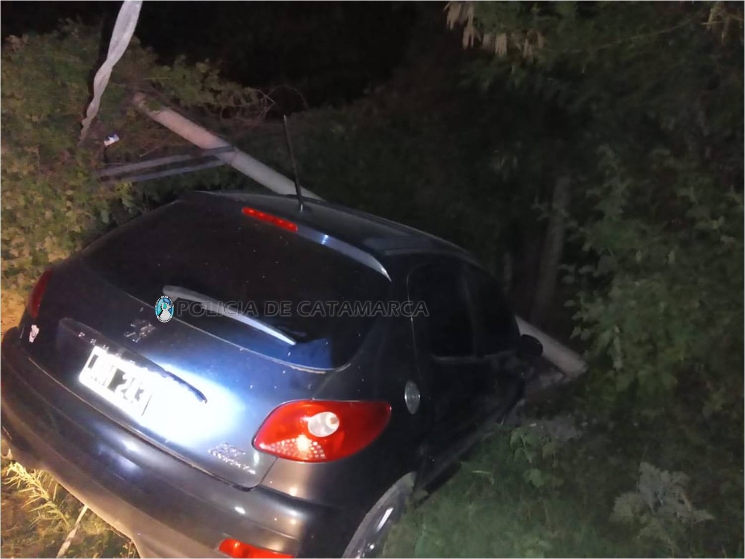 En el lugar, un automóvil Peugeot 207, dominio JRH-243, de color gris oscuro, al mando de Carlos Coronel (28), por causas que son materia de investigación, chocó contra un poste de cemento del tendido eléctrico.
