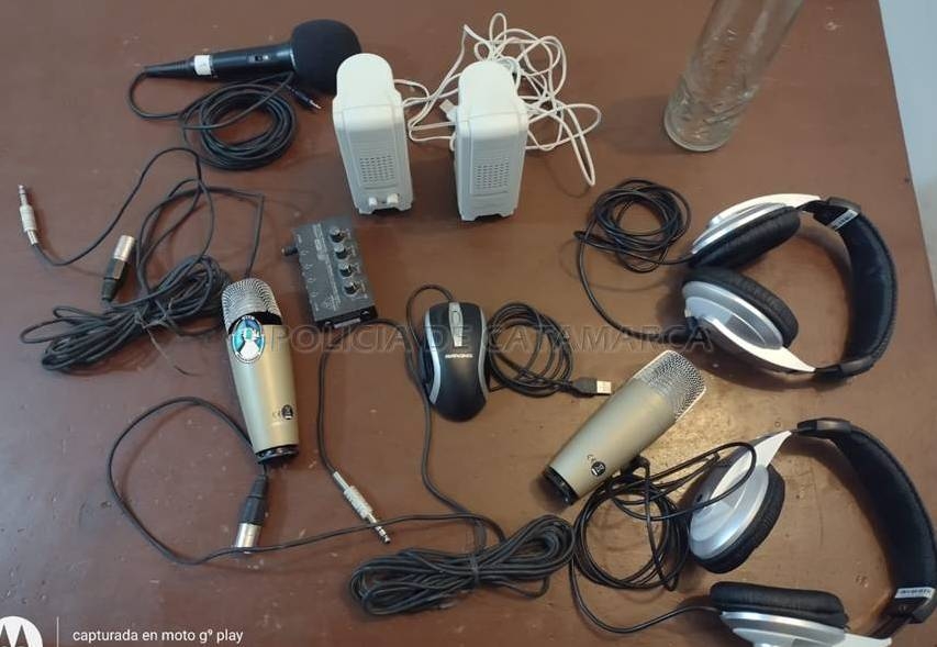 Más tarde, a las 22, se hizo presente en la Seccional la progenitora del jovencito, una mujer de 38 años, e hizo entrega voluntaria de tres micrófonos, marcas Sansón R10S y Behringer C-1; uno de ellos con el cabezal salido, dos cables de micrófono de color negro, un mouse, dos parlantes blancos, dos auriculares, una mini consola con cuatro salidas de micrófono, que quedaron en calidad de secuestro a disposición de la Fiscalía de la Quinta Circunscripción Judicial, desde donde se indicaron las medidas a seguir.