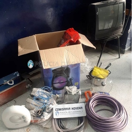 Según se informó desde la policía en el lugar dejaron una bloquera del 15, una bolsa roja que en su interior contenía una liana de metal, una barrera de heladera, una manguera de nivel de aproximadamente 3 metros, un cable prolongador de corriente, un reflector, una bolsa arpillera blanca con cables de diferentes medidas, una caja amarilla con partes de cerraduras, una caja azul con una sopapa de lavatorio, una sierra diamantada para vidrio o mármol, una bolsa blanca con cinta teflón, un sella rosca y cuatro adaptadores para manguera, una sierra de mano con mango anaranjado, un rollo de cable morado, una caja azul conteniendo una cinta métrica de 3 metros, una corona de motocicleta, una bolsa de café, un acolchado rojo, un caloventor blanco marca Atma, un micrófono con su correspondiente cable y caja, un cucharón metálico con mango negro, tres cacerolas metálicas, un ruleman azul y un televisor negro de 20 pulgadas, que quedaron en calidad de secuestro.
