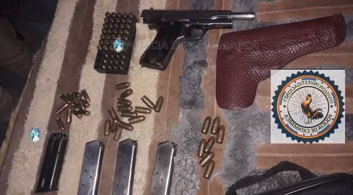 Los investigadores secuestraron un arma de fuego Colt 11,25 mm., de color negro, con tres cargadores y 20 cartuchos del mismo calibre; un cargador de 9 mm, cuarenta y 47 cartuchos 9 mm; y una pistolera interna de cuero marrón, que quedaron a disposición de la Justicia interviniente, mientras que los moradores fueron supeditados a la prosecución de la causa.