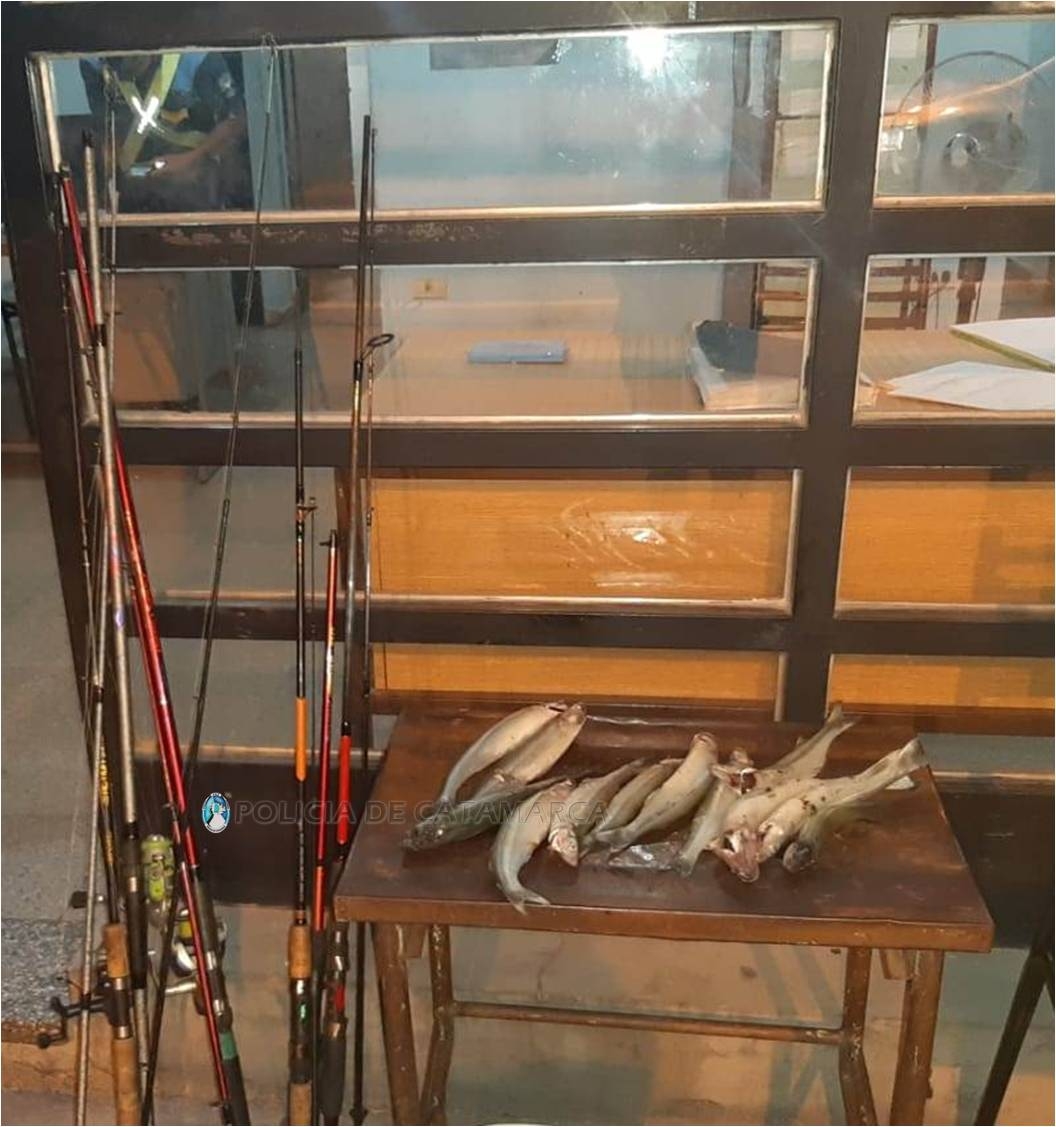 Tras inspeccionar el interior del rodado, los policías procedieron al secuestro de doce ejemplares de pejerrey, y varias cañas de pescar.