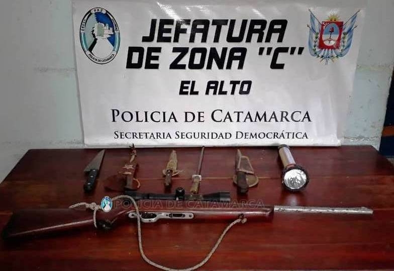 Más tarde, a las 6:30, los Policías materializaron registros domiciliarios ordenados por la Fiscalía de Instrucción en turno, en tres viviendas ubicadas en el Paraje La Cañada, de ese Departamento, y procedieron al arresto en averiguación del hecho de dos jóvenes de 21 y 24 años, de apellidos Arévalo y Carabajal, como así también secuestraron dos animales equinos; uno pelaje tostado mala cara y el restante zaino picazo, dos aperos completos, una carabina calibre 22 con mira telescópica, tres cuchillas con vaina, una chaira, una linterna y prendas de vestir varias.