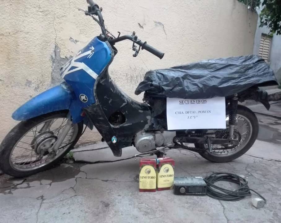 En el lugar, aprehendieron a un hombre de apellido Galán, de 34 años, quien habría sido sorprendido intentando sustraer combustible de una motocicleta Gilera 110 cc., de color gris, propiedad de un joven de 26 años, como así también los policías secuestraron una Motomel Blitz 110 cc. azul, en la que circulaba esta persona, un estéreo, marca High Power, de color negro, un prolongador de corriente negro y dos cajas de vino.