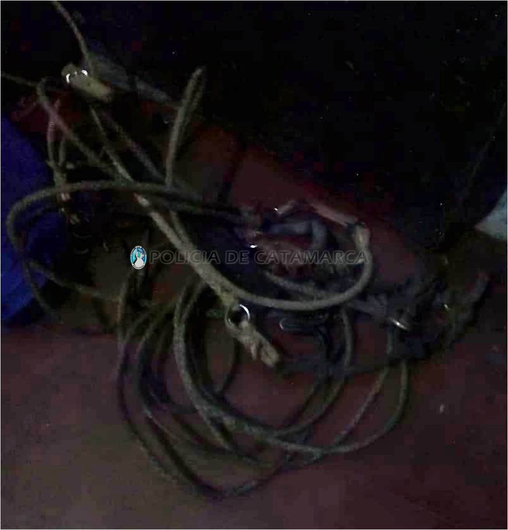 En el lugar, procedieron al arresto de dos jóvenes de apellido González, de 22 y 23 años, quienes habrían sido sorprendidos llevando dos peleros, un freno con rienda, una soga de 3 metros aproximadamente, un lazo, dos cuchillos, un machete, una sierra y un correaje, que quedaron en calidad de secuestro hasta establecer su legítima propiedad y procedencia.
