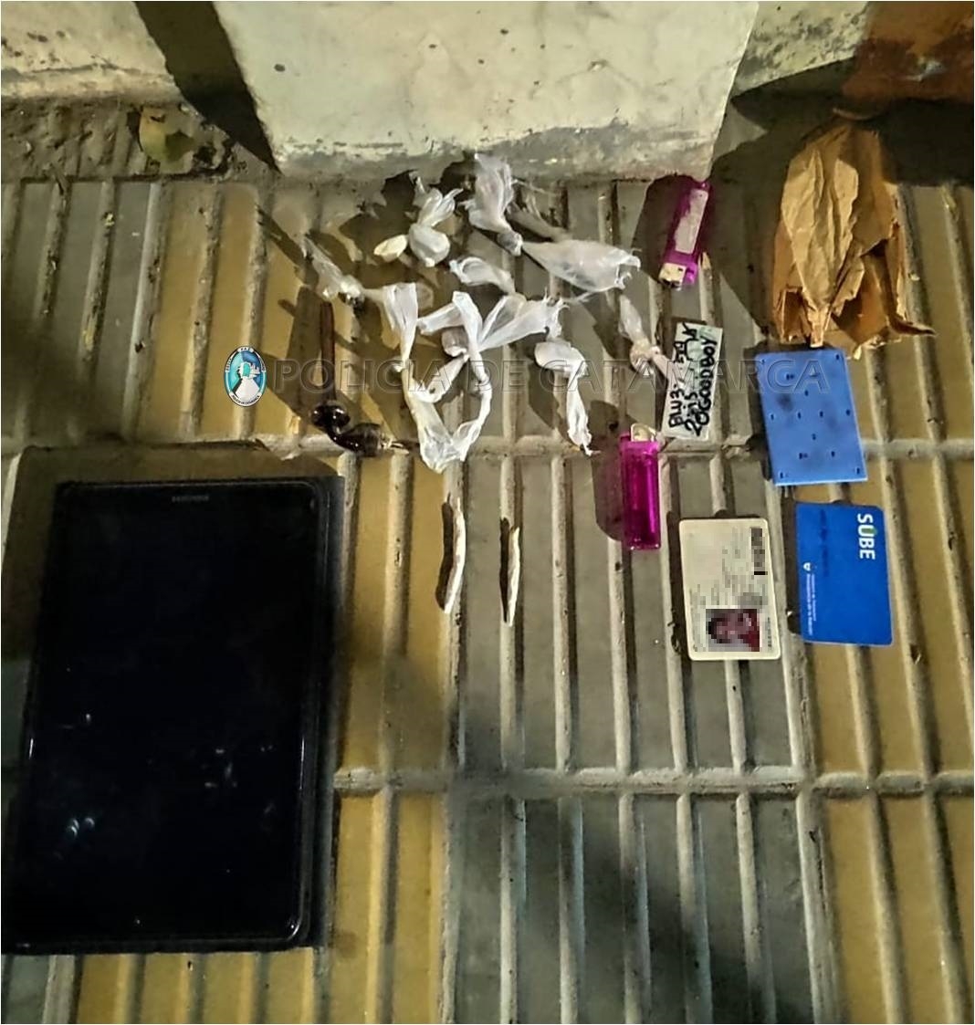 Inmediatamente, los policías constataron que se tratarían de diez envoltorios de nylon con una sustancia tipo herbácea, y tras identificarlos y realizarles la requisa correspondiente a dos jóvenes de 18 años y a dos adolescentes de 16 y 17 años, los policías encontraron entre sus prendas de vestir dos cigarrillos de armado casero con la misma sustancia, una pipa metálica, dos encendedores rosados y una tablet negra, de la cual no pudieron acreditar su legítima propiedad y procedencia.