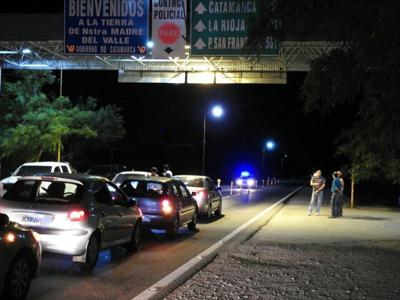 En la noche del sábado, a las 20.45, en el puesto caminero El Portezuelo, ubicado en la ruta nacional N' 38 de la localidad de Santa Rosa, Valle Viejo, efectivos de la Dirección de Seguridad Vial de la Policía procedieron a controlar un automóvil Volkswagen Gol Trend, de color rojo, en el que circulaban dos hombres de apellido Ledesma, de 30 y 32 años, ambos oriundos de la provincia de Santiago del Estero.