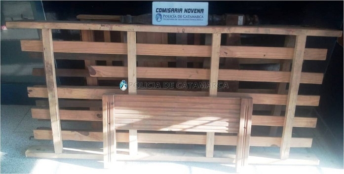 Hoy, a las 8:30, mientras personal de la Comisaría Novena realizaba recorridos preventivos por inmediaciones al predio del Velódromo Municipal, observó una cama de madera de una plaza desarmada, que estaba abandonada.