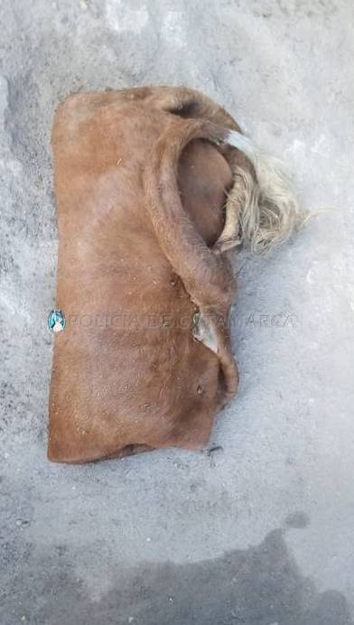 Durante la medida judicial, en el fondo del inmueble, el personal policial interviniente secuestró una tambera faenada de la raza Bradford, pelaje colorado pampa, de aproximadamente unos 120 Kg., el cuero del animal y elementos para la faena, quedando en calidad de arrestado en averiguación del hecho un joven de apellido Andrada (29), quien sería el presunto autor del delito investigado.